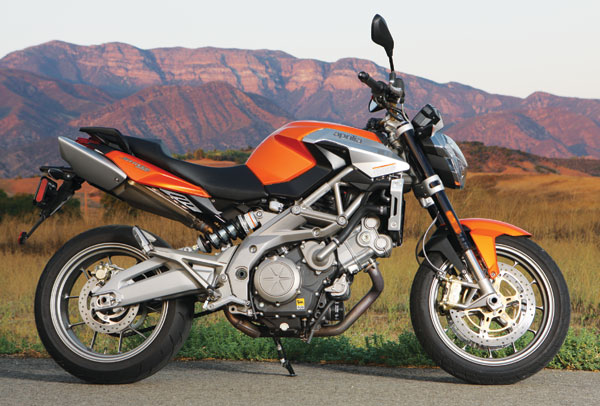 Because of the plastic cover on its 4.2-gallon tank the Shiver will require a strap-on tankbag. It returned a respectable 46 mpg average in Rain mode, and 42.4 mpg overall. On our scales, the Shiver sent the numbers spinning to 486 pounds wet, which explained why the bike wasn’t quite as responsive as we’d expected. Though we haven’t tested any other 750 sportbikes recently, earlier this year we did test the somewhat smaller-displacement Ducati 695 Monster and Triumph 675 Street Triple, which weighed in at 419 and 420 pounds respectively.